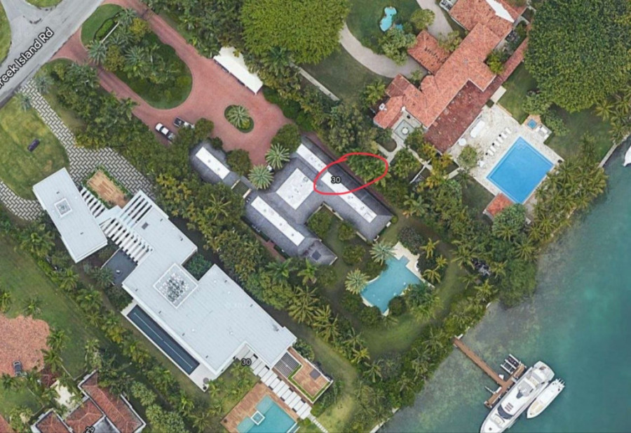 Vila se nalazi na malom bogataškom ostrvu Indijan Krik, koje pripada takođe elitnom gradu Majami Bič. Kako pokazuju satelitski snimci, vila ima veliki bazen, direktan izlaz na more i pristanište za jahtu. Nalazi se na istočnoj obali južne Floride, a to je najprestižniji kraj u celoj Americi - na jedva nešto više od sat vremena vožnje uz obalu smešten je “Mar-a-Lago” gde živi Donald Tramp!