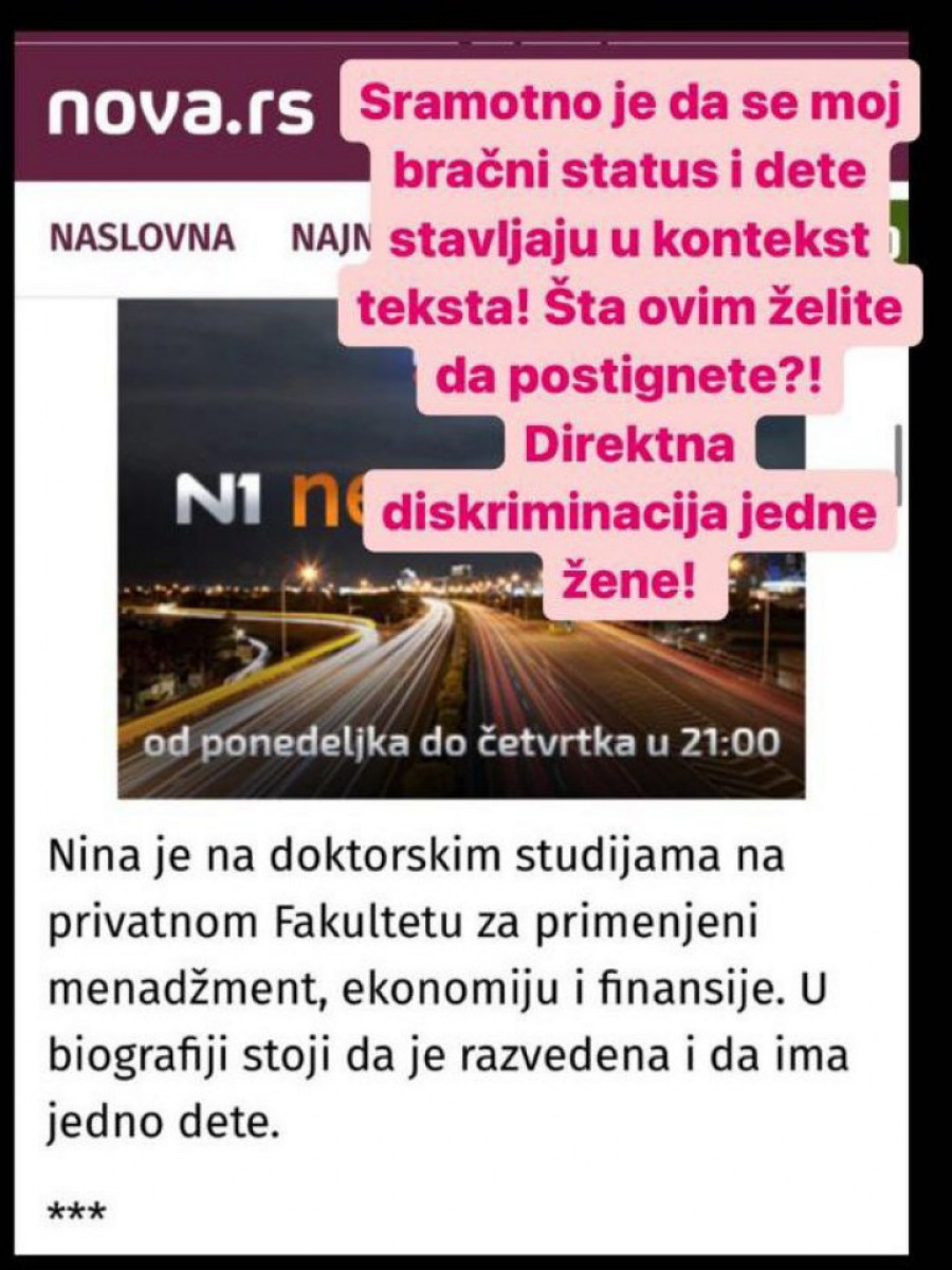 Medij u vlasništvu tajkuna Dragana Šolaka u tekstu o Nini Mitić, pomoćnici ministra za ljudska i manjinska prava i društveni dijalog, grubo je diskriminisao žene potenciranjem o bračnom statusu i broju dece.