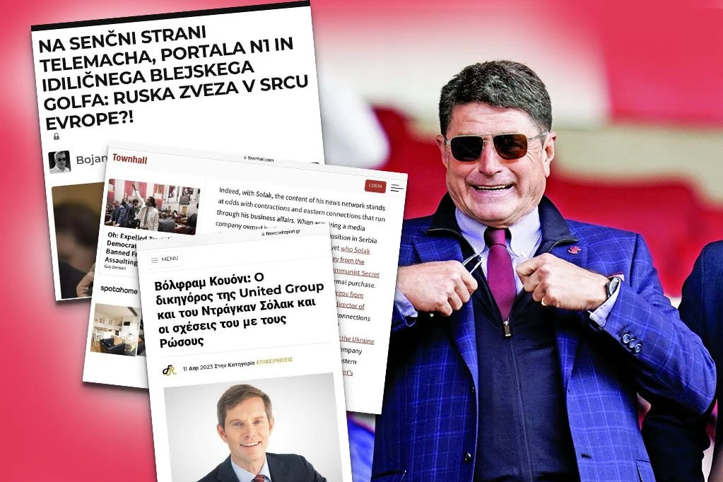 Prvi izveštaj o partnerstvu Dragana Šolaka i Volframa Kuonija objavio je pre nedelju dana istraživački portal “Požar Report” u Sloveniji, u priči sa naslovom “Na tamnoj strani Telemaha, portala N1 i idiličnog bledskog golfa: Ruska veza u srcu Evrope?!”.