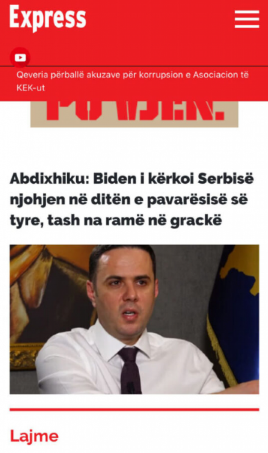 Abdidžiku spominje pismo američkog predsjednika Džozefa Bajdena koje je poslao Srbiji na dan njihove nezavisnosti, piše srpski portal.
