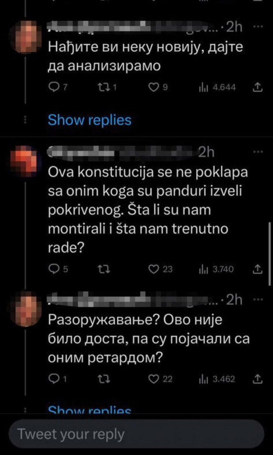 - Ova konstitucija se ne poklapa sa onim koga su panduri izveli pokrivenog. Šta li su nam montirali i šta nam rade - piše u jednom Tvitu ispod fotografije Koste Kecmanovića.