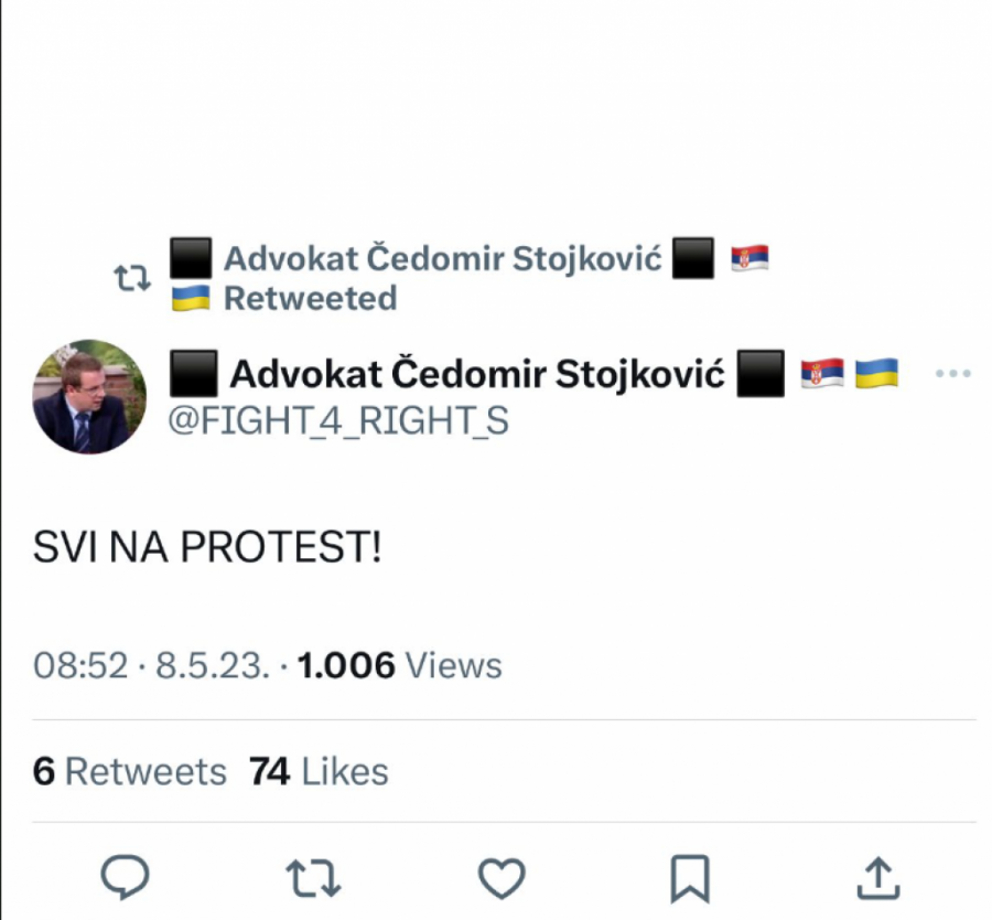 Glavni ukrajinski i NATO lobista u Srbiji, advokat Čedomir Stojković pridružio se ekipi koja zloupotrebljava tragedije koje su zadesile Srbiju i poziva na protest ispred Skupštine.