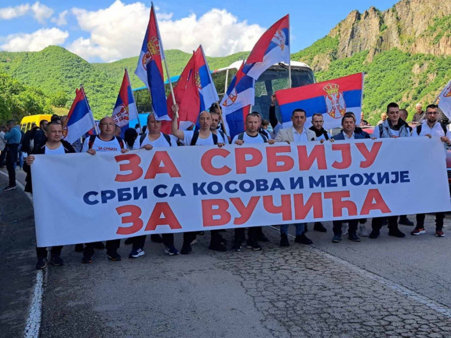 ZA SRBIJU, ZA VUČIĆA: Srbi iz Leposavića i Severne Mitrovice peške krenuli za Beograd na miting "Srbija nade" (FOTO)