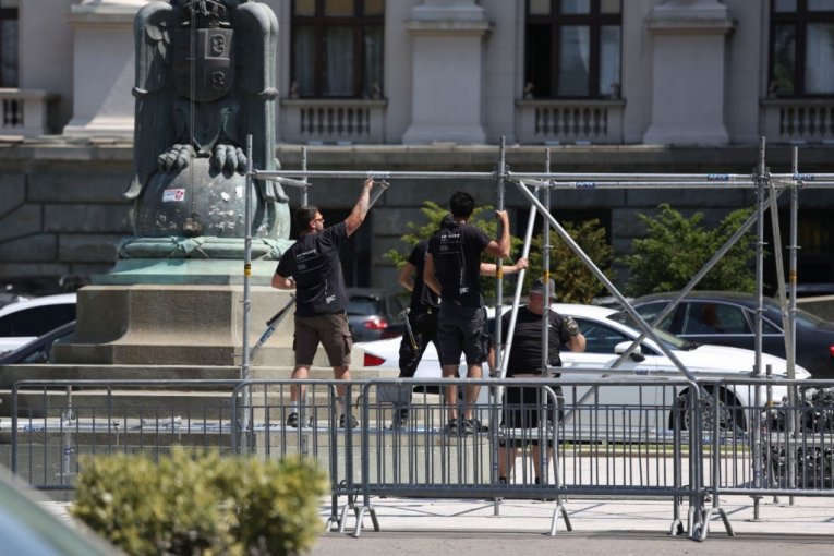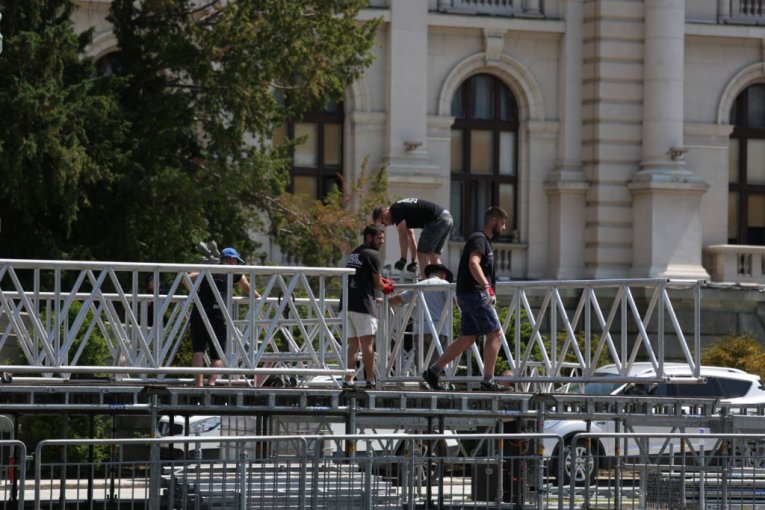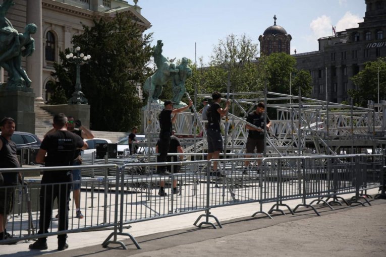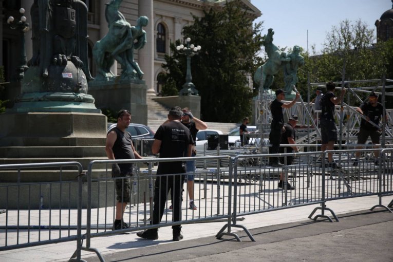POČELE PRIPREME ZA NAJVEĆI SKUP U SRBIJI: Ispred Skupštine Srbije radovi povodom "Skupa nade" (FOTO)