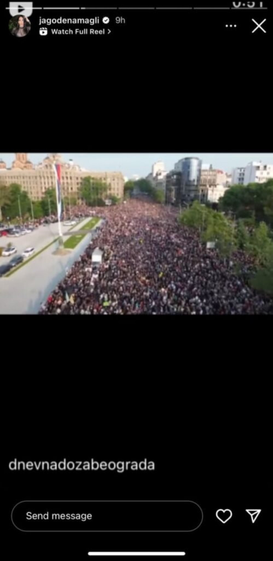 Glumica Jelisaveta Orašanin uzima novac od Pinka i Telekoma za snimanje filma, a onda na društvenim mrežama poziva na proteste i otvoreno podržava opoziciju koja govori kako država nije dobra i kako je na snazi "diktatorski režim", a nasilnom blokadom maltretira građene i lešinari na ogromnoj tragediji koja je pogodila Srbiju.
