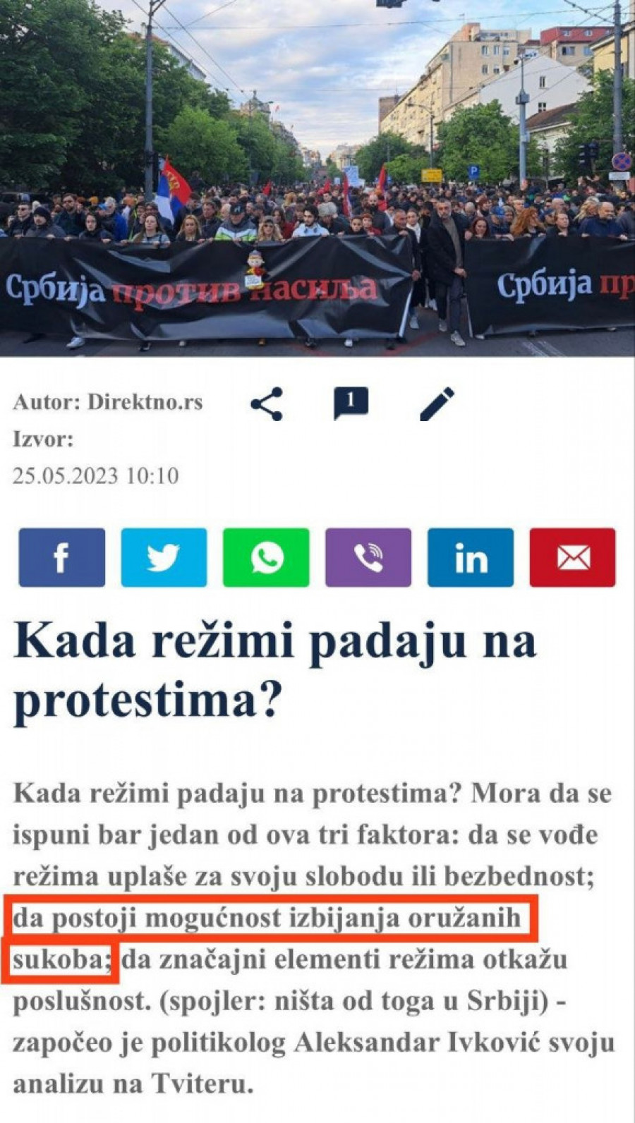 Na portalu Direktno je, naime, objavljen tekst pod naslovom "Kada režimi padaju na protestima?" u kom prenose navode politikologa Aleksandra Ivkovića.