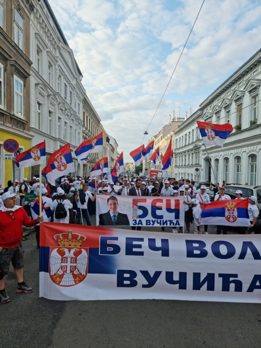 Naime, u Beču kako možemo videti građani su igrali kolo, a na transparentima je ispisano "Beč uz Vučića".