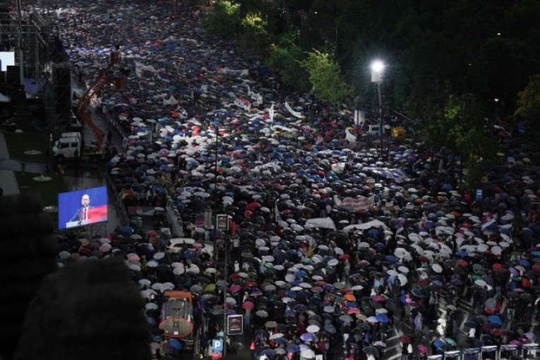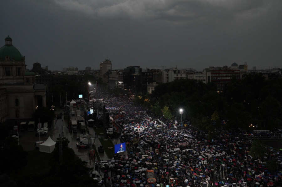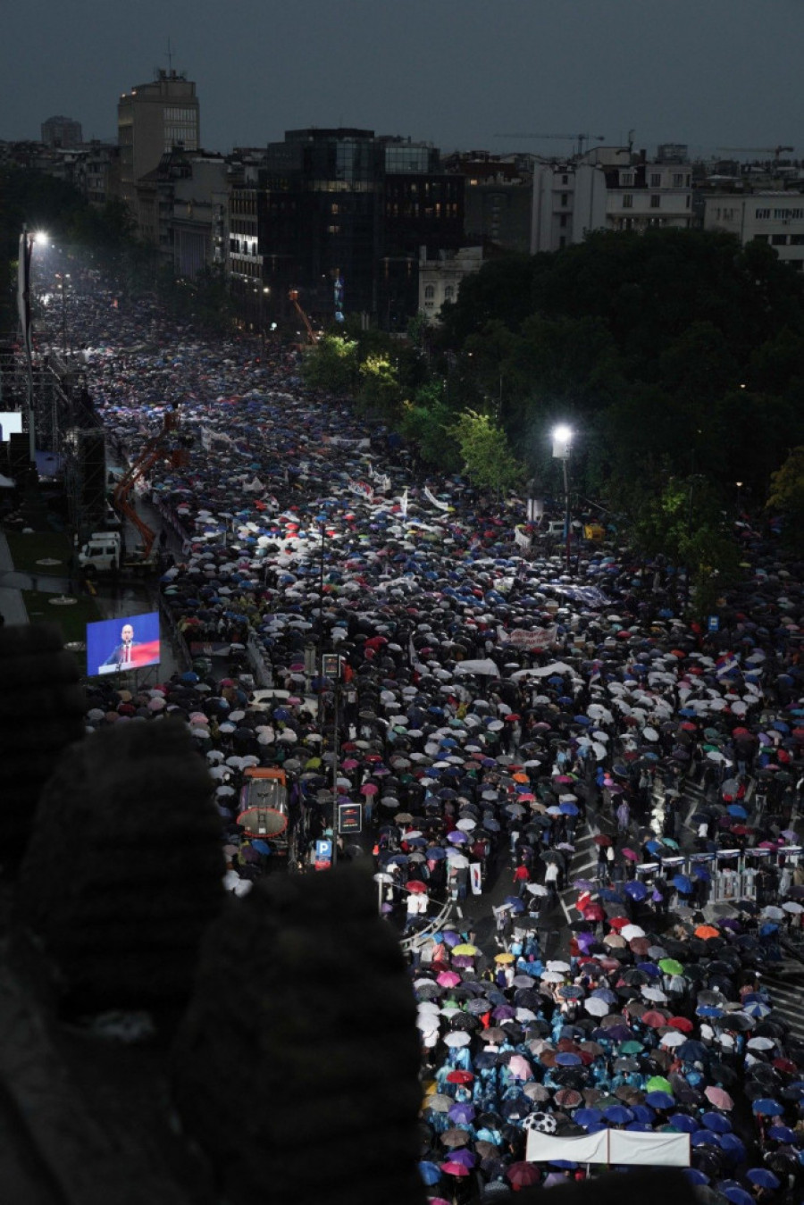 Skup je počeo u 19 časova, a građani se nalaze ispred Narodne skupštine gde se trenutno se građanima obraća predsednik Aleksandar Vučić.