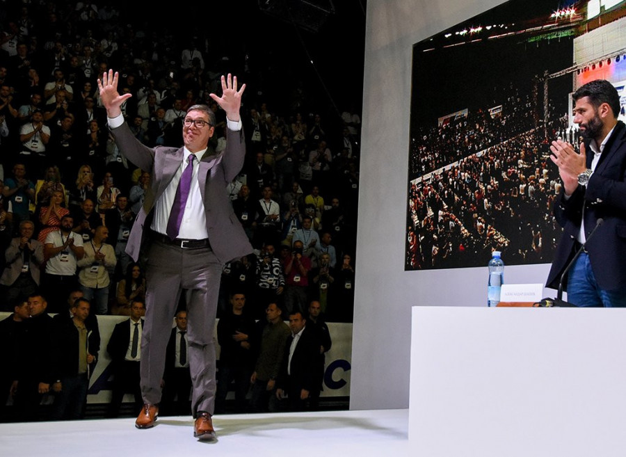 Predsednik Srbije i još uvek aktuelni predsednik SNS dočekan je ovacijama i gromkim aplauzom.