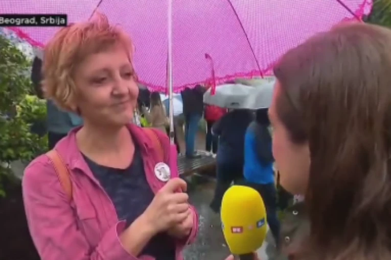 Hrvatski RTL Danas izveštava sa protesta, a kao sagovornicu ima Biljanu Stojković, koja je osvojila 3,22% na izborima 2022. godine, a koju najavljuju kao Vučićevog protivkandidata.