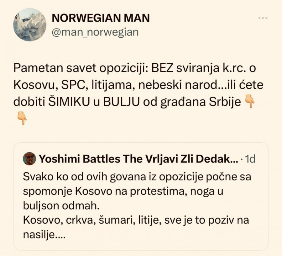 Opozicija i Kurti I tajkuni su spremni na sve da uradi samo da ukaljaju ugled Srbije I Predsednika Vučića. Narod je uz Predsednika Vučića i neće dozvoliti tajkunima da unište Srbiju.