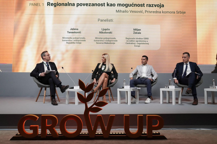 Ministarka poljoprivrede Srbije Jelena Tanasković i ministar poljoprivrede Severne Makedonije Ljupčo Nikolovski, govorili su na panel diskusiji o "Regionalnoj povezanosti", u okviru drugog dana agrobiznis konferencije "Grow up - snaga zemlje".