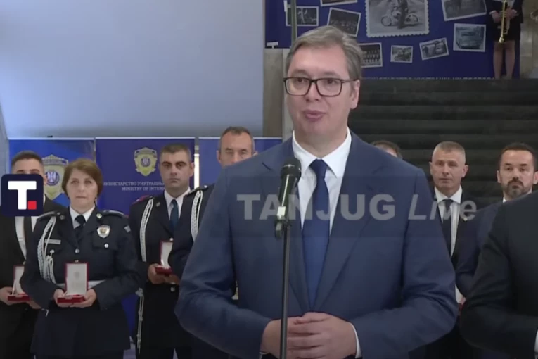 Predsednik Srbije Aleksandar Vučić prisustvuje danas manifestaciji povodom obeležavanja Dana Ministarstva unutrašnjih poslova i Dana policije. Tokom obeležavanja obratio se građanima i odgovarao na pitanja medija.