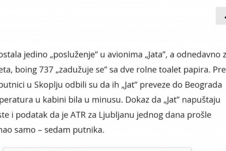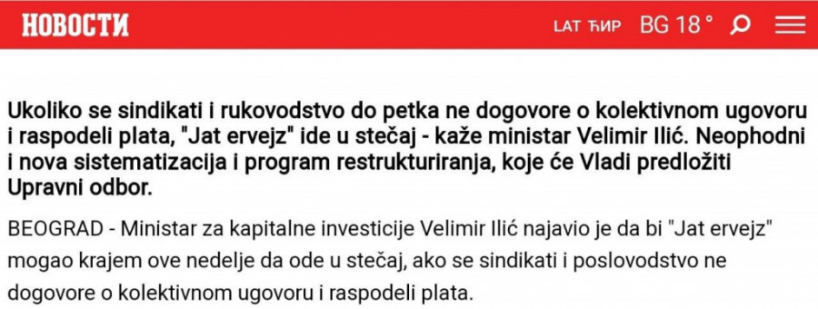 Er Srbija je poslednjih dana ponovo kritikovana, a neretko se prethodnih godina traži i svaka dlaka u jajetu naše nacionalne kompanije, pre svega u delu opozicinih medija i političara koji po svaku cenu žele da dokazu da su svi Vučićevi projekti loši. Normalan čovek sa iole pristojnim sećanjem ne može a da se ne zapita čemu to? Pogotovo što pričamo o kompaniji koja je nesledila lešinu od prethodnog Jata za koji prethodne vlasti nikad nisu imale rešenje, osim stečaja.