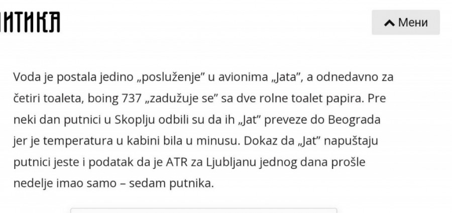 Kao hijene su skočili opoziciono nastrojeni mediji kako bi napali Er Srbiju samo zbog toga što trenutno ima promo ponudu i prodaje karte po povoljnijom ceni, najoštrije kritikujući ovu kompaniju, nazivajući je "Vučićevim propalim projektom".