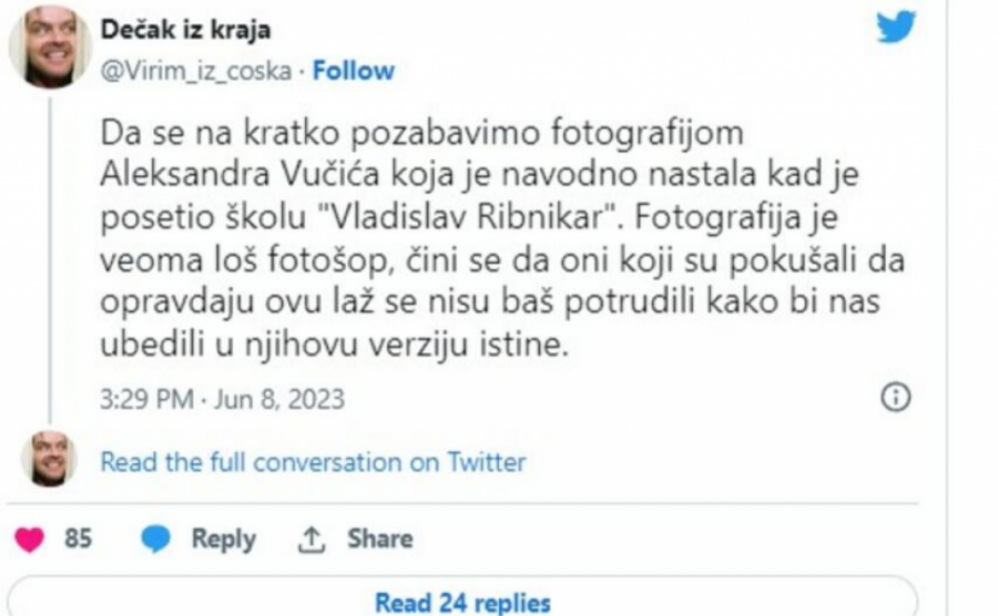 Fotografiju su objavili kao ključnu informaciju koja je dala odgovor na pitanje koje se pojavilo u javnosti - da li je Vučić bio u školi.