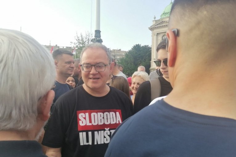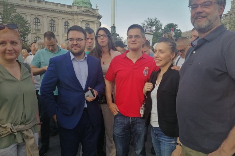 18.10 - Na protest su, između ostalih, došli poslanik Zeleno-levog kluba Radomir Lazović, predsednik Narodne stranke Vuk Jeremić, potpredsednici Stranke slobode i pravde Borko Stefanović i Marinika Tepić, predsednik Demokratske stranke Zoran Lutovac, poslanik DS Srđan Milivojević, lider Ekološkog ustanka Aleksandar Jovanović Ćuta, predsednik Pokreta za preokret Janko Veselinović, kopredsednik stranke Zajedno Biljana Stojković, kao i lider pokreta Srce Zdravko Ponoš, poslanik koalicije Zajedno-Moramo Đorđe Pavićević, predsednik Narodnog slobodarskog pokreta Miroslav Parović, hrvatski novinar Domagoj Margetić...