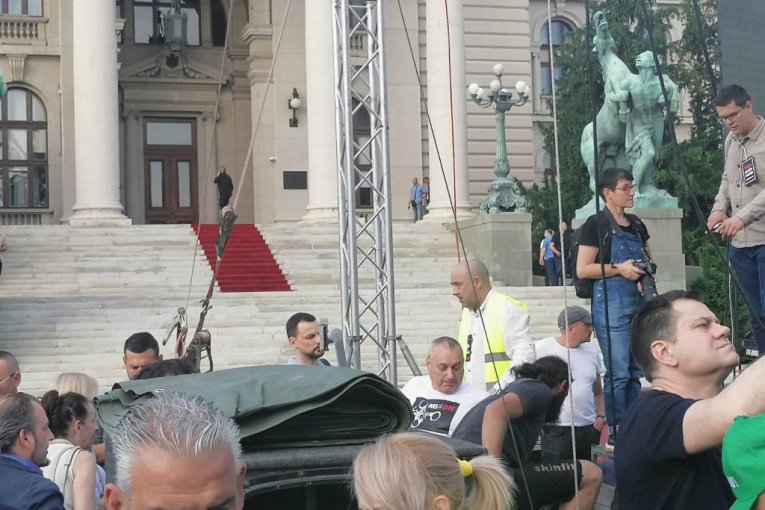 Na bini ispred Narodne skupštine počela su obraćanja.