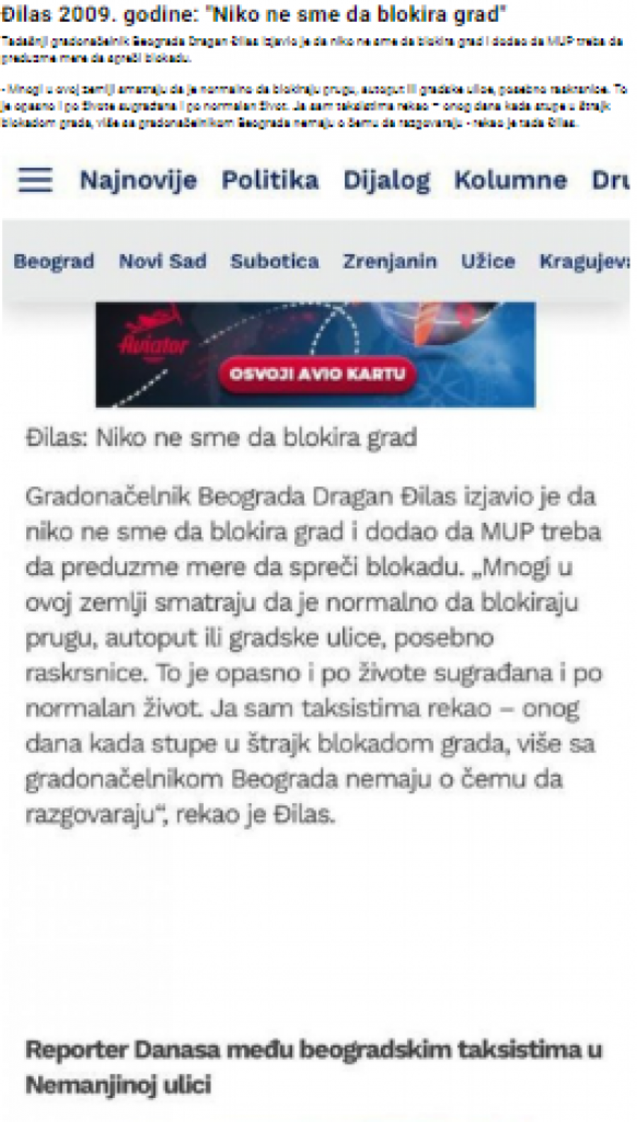 Đilas je 2009.godine normalno razmišljao i shvatao da je blokada grada i saobraćajnica nezakonita i loša i da to ne treba da se radi. Kao gradonačelnik je shvatao koliko je to opasno po građane a sada mu ta blokada ne smeta čak i učestvuje u njoj, jer žele haos u Srbiji i vlast bez izbora. Vrlo prevrtljivo razmišljanje Đilasa.