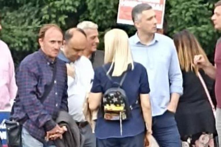 Na protestu su se pojavili Boško Obradović, Radomir Lazović, Dobrica Veselinović, Zoran Lutovac.