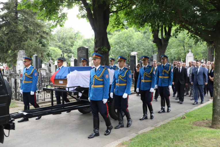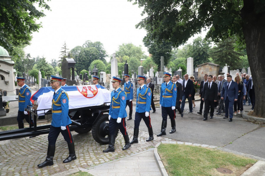 Milan Milutinović sahranjen je juče uz vojne počasti u Aleji zaslužnih građana na Novom groblju u Beogradu. Na večni počinak ispratili su ga poštovaoci, rodbina, prijatelji, među kojima su bili i Dragan Hadži Antić, nekadašnji prvi čovek Politike, kao i advokat Miljko Živojinović, sin glumca Velimira Bate Živojinovića, ali i funkcioneri SPS Nikola Nikodijević, Zoran Anđelković...