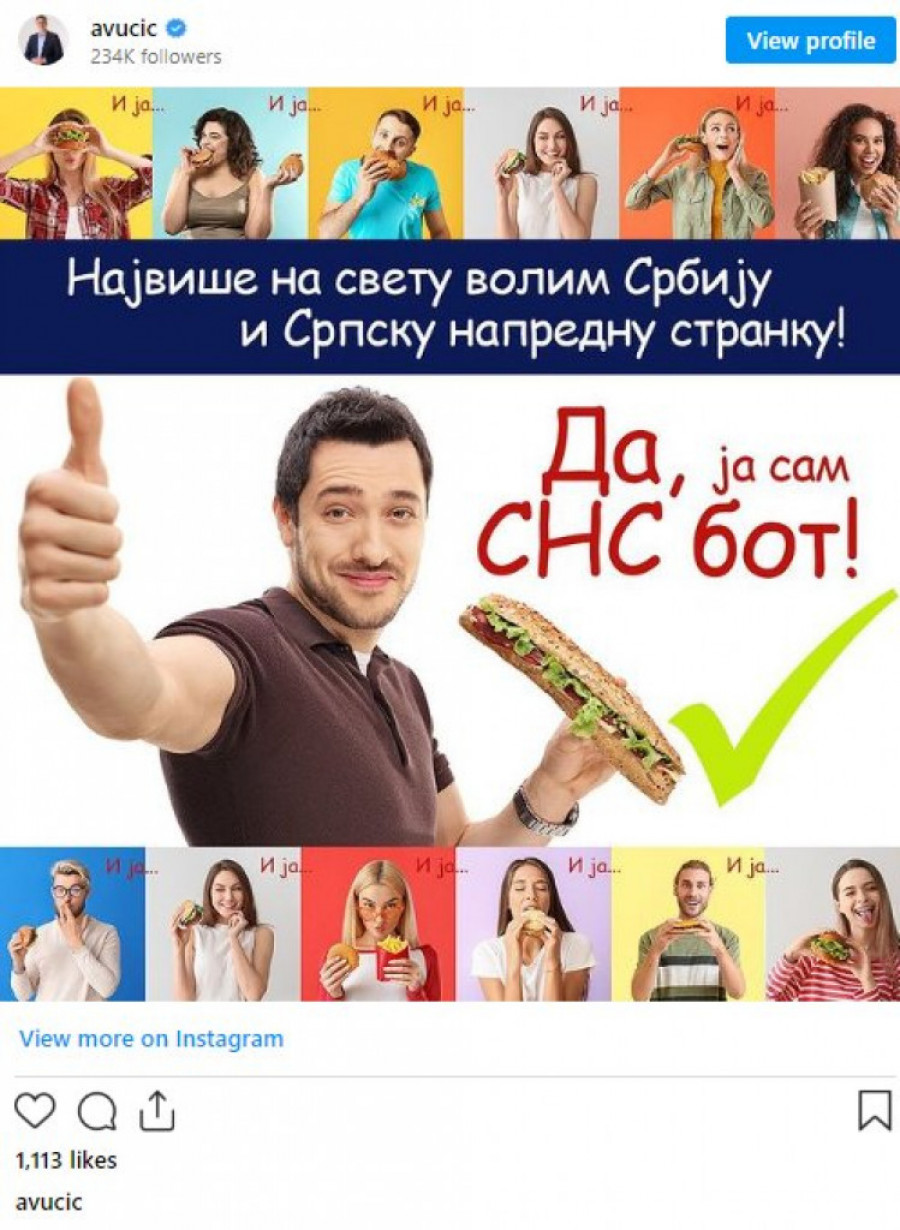 – Da, i ja sam SNS bot – napisao je predsednik i podelio fotografiju koju masovno dele naprednjaci.