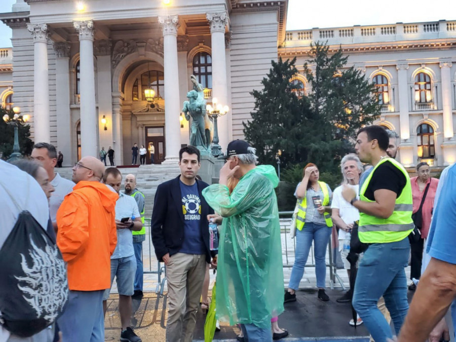 Poslanici prozapadne opozicije iz Ujedinjenih, Narodne stranke, Zeleno-levog kluba, Moramo-Zajedno i Demokratske stranke okupljaju se ispred Skupštine Srbije.