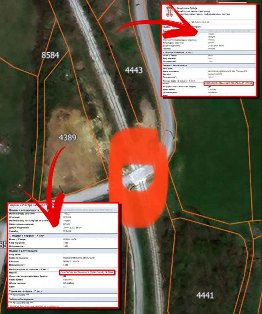 Uvidom u katastar, vidi se da se pružni prelaz na kom se desila nesreća nalazi tik uz parcele koje su u vlasništvu Jelene Simonović, ćerke Dragoljuba Simonovića. Prema rečima izvora našeg lista iz "Železnica Srbije", Simonovići su kupili ovu zemlju, a potom je Dragoljub Simonović 2014. i 2015. uradio projekat za podvožnjak između dve parcele njegove ćerke, a sve da bi naplatio pare za eksproprijaciju.