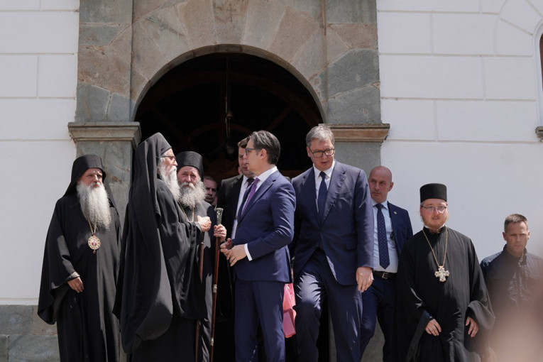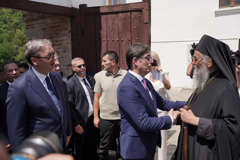 – Mnogo sam srećan što danas možeo da budemo gosti u ovom prelepo manastiru. Da potvrdimo samo izuzetne odnose koji postoje između Srbije i Severne Makedonije. Bio sam oduševljen kada sam video ljude ovde jutros koji govore makedonskim jezikom. Odlično razumemo makedonski jezik, kao i vi srpski. Nemam problem da kažem da smo mi prijatelji, da imamo bratske odnose, verujem da će se ti odnosi dalje razvijati – rekao je predsednik Vučić.