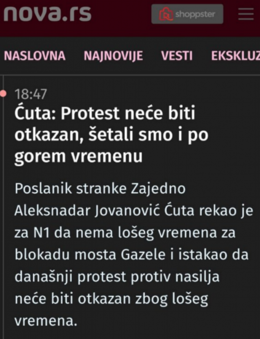 Naime, na pomenutim portalima su se pojavili identični tekstovi u kojima narodni poslanik, jedan od predvodnika protesta ''Srbija protiv nasilja'', istih onih ispred kojih potpredsednik Narodne stranke, Miroslav Aleksić preti građanima ''da će Srbija stati'', Aleksandar Jovanović Ćuta govori o organizovanim šetnjama opozicionara, a u svakom od tih tekstova ista greška se pojavljuje.