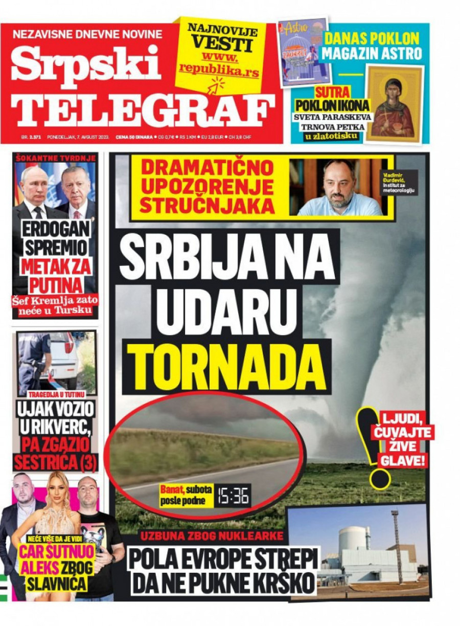 SRBIJA NA UDARU TORNADA! ČITAJTE U SRPSKOM TELEGRAFU!