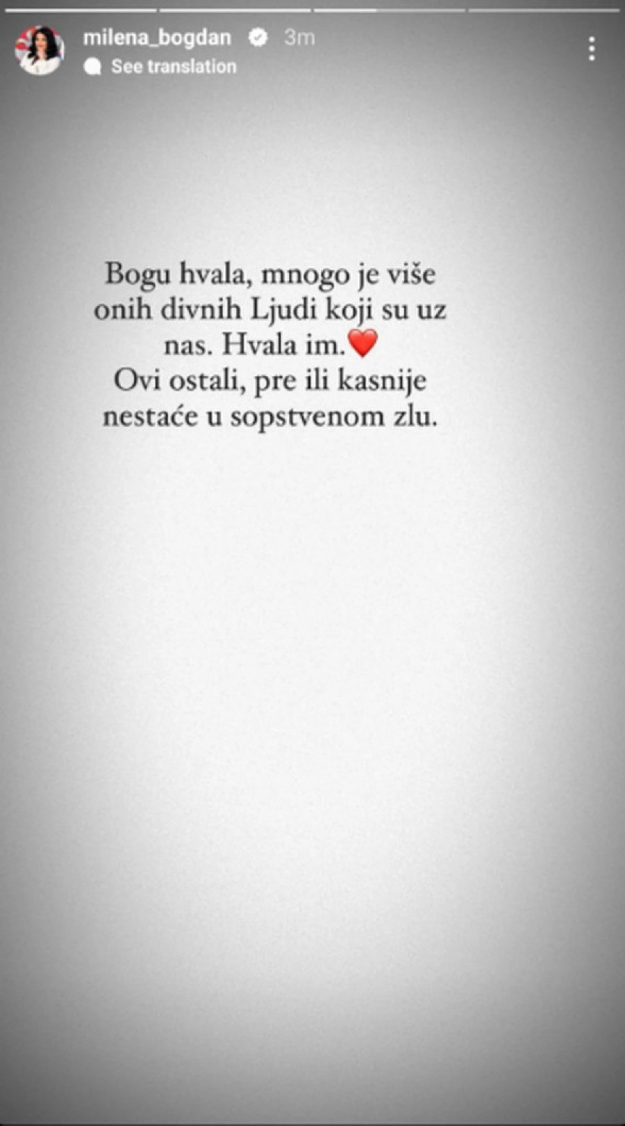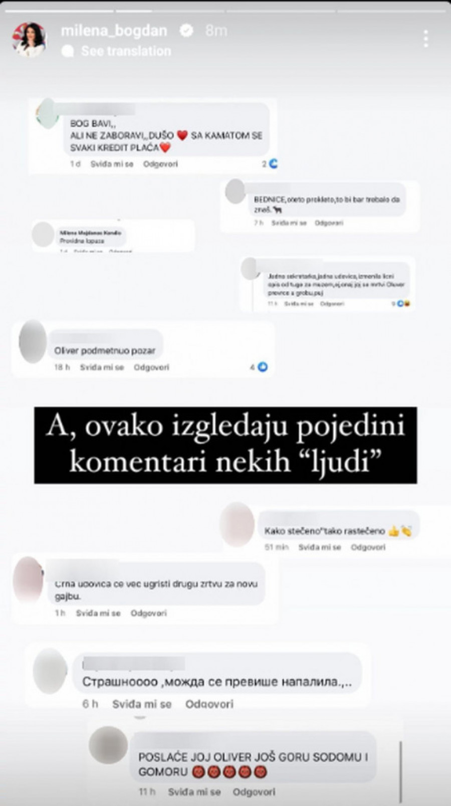 Na svom Instagram profilu, Milena je objavila komentare koje dobija nakon incidenta.