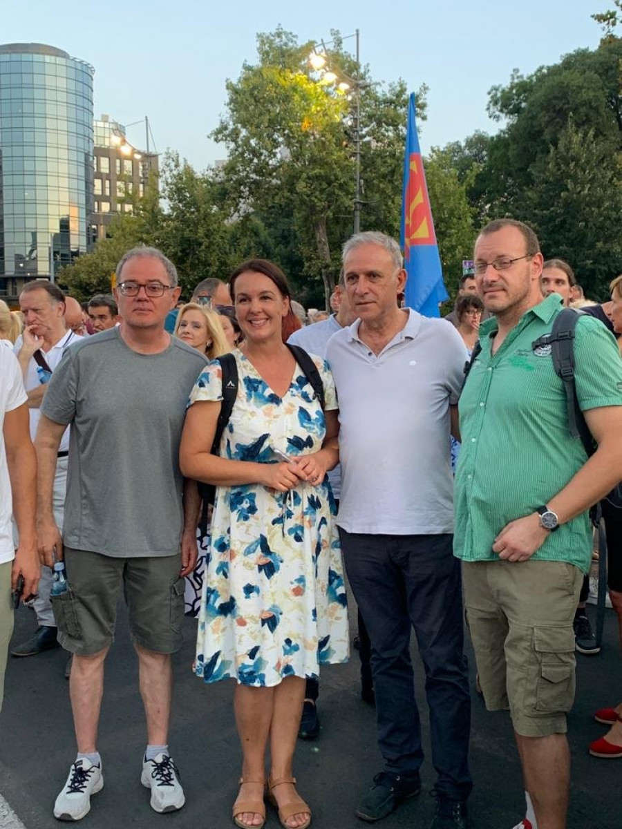 Na protest su došli predsednik Demokratske stranke Zoran Lutovac, poslanica DS Dragana Rakić, lider Ekološkog ustanka Aleksandar Jovanović Ćuta, lider pokreta Srce Zdravko Ponoš, Dobrica Veselinović iz Zeleno levog kluba, kopredsednik stranke Zajedno Nebojša Zelenović.