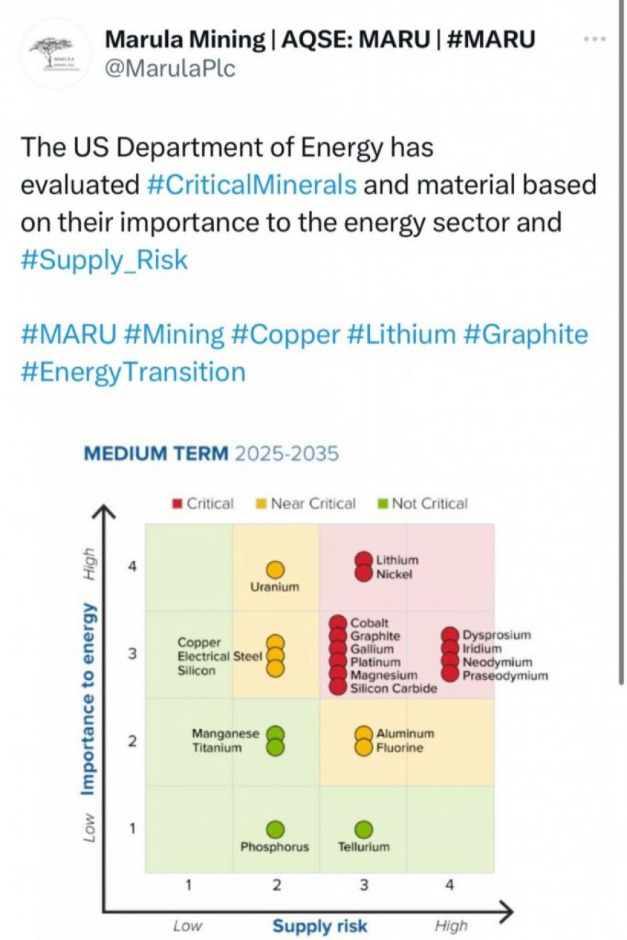 Ministarstvo energetike SAD-a procenilo je kritične minerale i materijal na temelju njihove važnosti za energetski sektor i rizik snabdevanja.