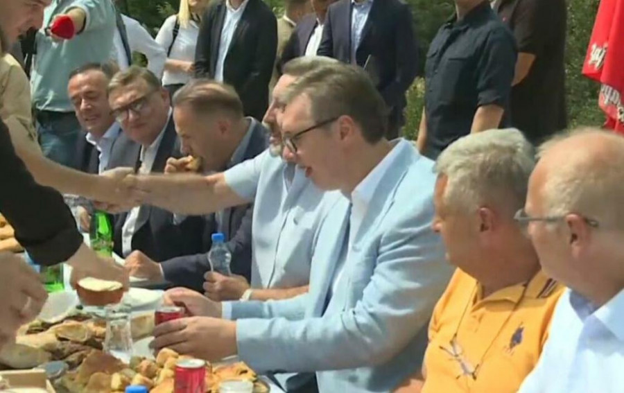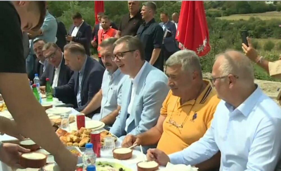 Tokom obilaska deonice puta, Vučić je razgovarao s radnicima, upitao ih o uslovima rada i platama, te ih pozvao da se posluže i sednu s njim za sto. U toku ručka, predsednik je istakao svoju omiljenu hranu - zeljanicu.