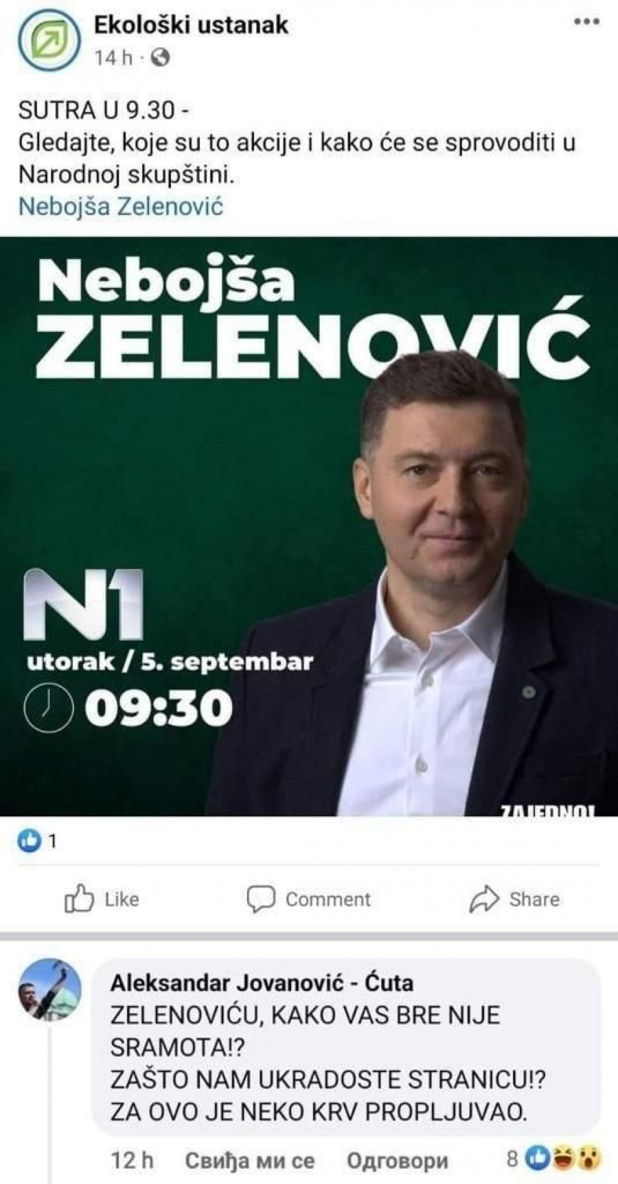 Podsetimo, U poslednjim danima, ekološka zajednica u Srbiji postala je poprište intenzivnih sukoba među različitim grupama aktivista. Ovi sukobi su kulminirali izjavom simpatizera Aleksandra Jovanovića Ćute u kojoj se otvoreno optužuje lider ekološkog pokreta, Zelenovića, za korupciju i krađu.
