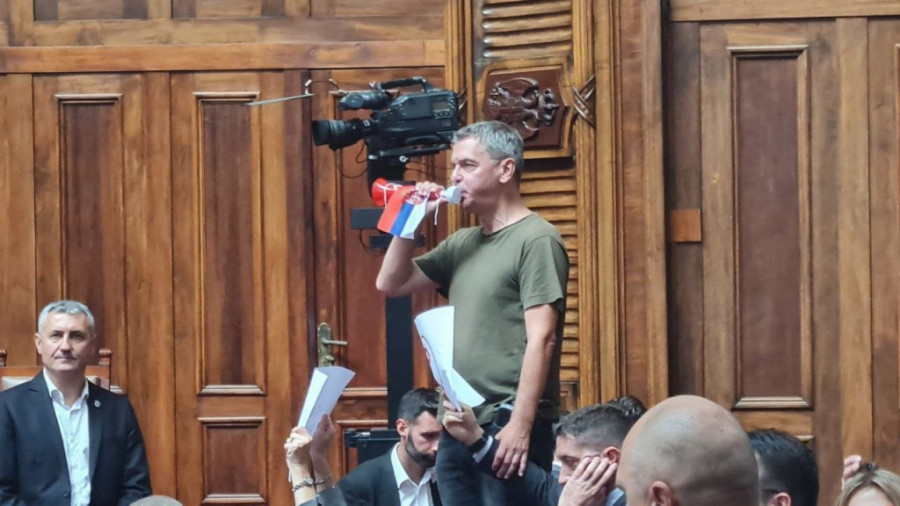 Deo opozicije u srpskom parlamentu ponovo je izazvao tumult, stvarajući haos u toku sednice. Poslanici opozicije su napustili svoja mesta, počeli duvati u pištaljke i urlati na saborce iz većinske stranke.