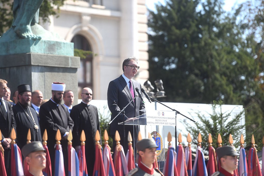 - Hvala vam što po kiši, suncu i snegu obavljate ne lake zadatke. Kada kažem teško vreme i breme, mislim na situaciju na svetu za koje nismo ni krivi ni dužni. Mi vojsku gradimo, u nju ulažemo više nego ikada. Pitajte vaše starije kolege, videćete koliko je danas lako nego predhodih godina. Danas je standard vojnika mnogo veći i neće vaši roditelji da brinu da li ćete da poreživljavate i godinama da budete podstanari, sve žemo toi rešavati. Ali morate da znate da vojska mora da reaguje u svakom trenutku. Zato ćemo da vas naoružavamo. Daćemo sve da čuvamo mir, ali, dragi oficiri, uvek morate da znate da samo svojom snagom, hrabrošćču,. ozbiljnoščlu i odgovornošću možemo naš narod i zemlju da sačuvamo - istakao je.