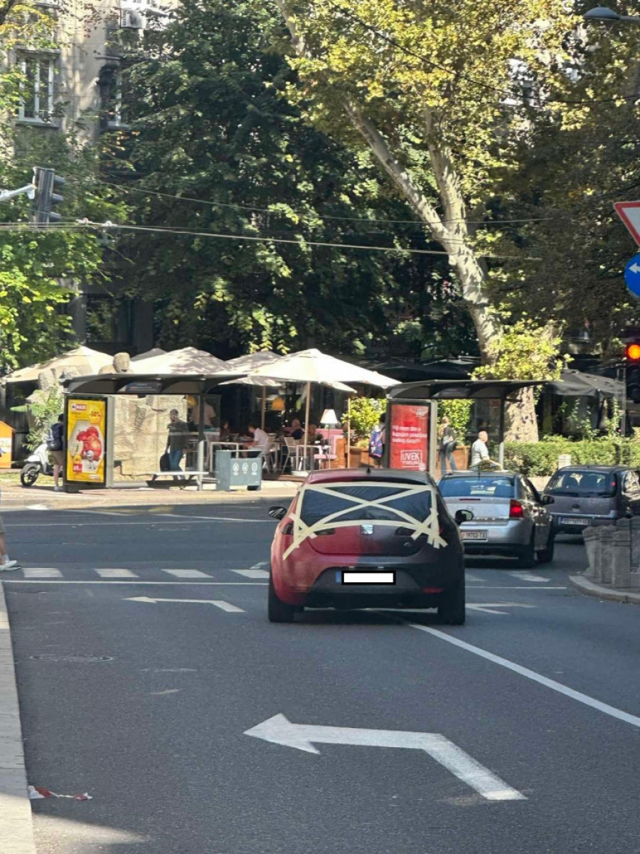Nakon napada, devojci je polomljeno zadnje staklo na automobilu, što se vidi na slici ispod...