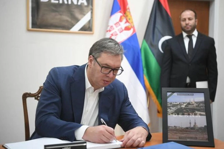 Predsednik Srbije Aleksandar Vučić upisao se u knjigu žalosti u ambasadi Libije nakon velikih poplava koje su odnele hiljade života.