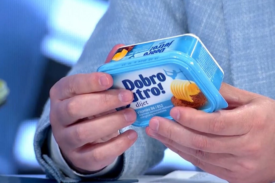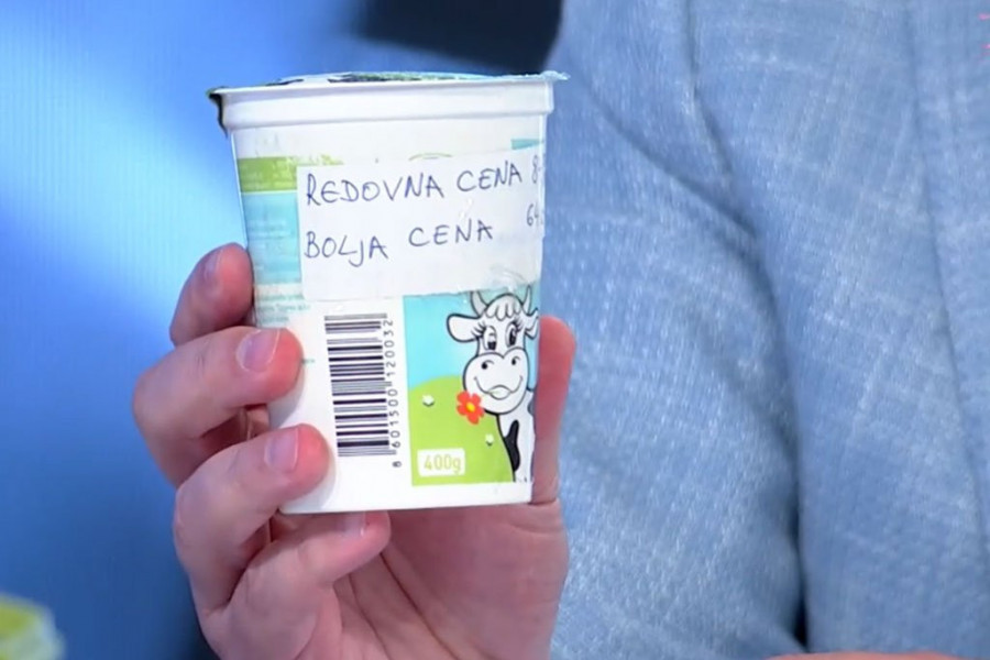 - Marmelada domaća će sada biti 190 dinara, skoro je 200 dinara jeftinija. Džem je takođe na ogromnom popustu. Taj dan su me kritikovali, sa mnom su na ti. Kažu, "Što ne sniziše cene ulja, mesa i brašna, to nam treba". Da obradujem Đilasa, Šolaka i sve. Evo vam ulje, suncokretovo sa 160 na 144 dinara. Doneo sam i ono što su tražili. Brašno tip 500 otišao je sa 70 na manje od 50. To je ogroman popust, na zadovoljstvo građana. Ovo je novi Petit keks na 119 dinara. Namaz Sirko sa 217 na 159 dinara. Ovo je pasulj gradištanac sa 340 na 256 dinara. Ovo je grašak, i tu je popust značajan. Imam u spisku. On je sa 180 na 139 dinara. Kupus, kilogram, cena je 99,99, nova cena je 69 dinara. Dobro jutro margarin, neki dijetalni, sada je 79 dinara.