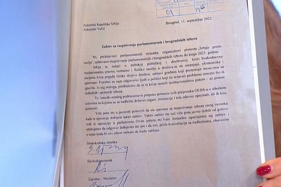 Predsednik je potom pročitao inicijativu stranki koje su pisale peticiju za parlamentarne i beogradske izbore.