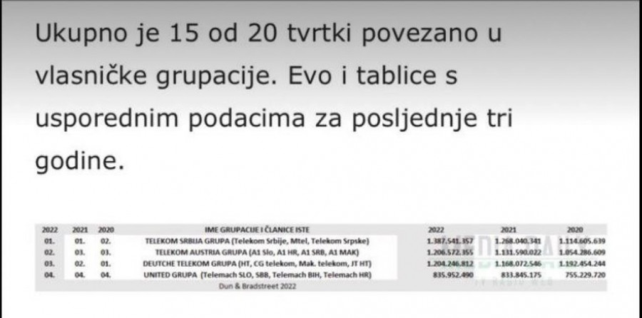 Ovo su podaci o prihodima samo za Srbiju, kada se gleda poslovanje cele Telekom Srbija Grupe u regionu brojevi su još značajno veći.