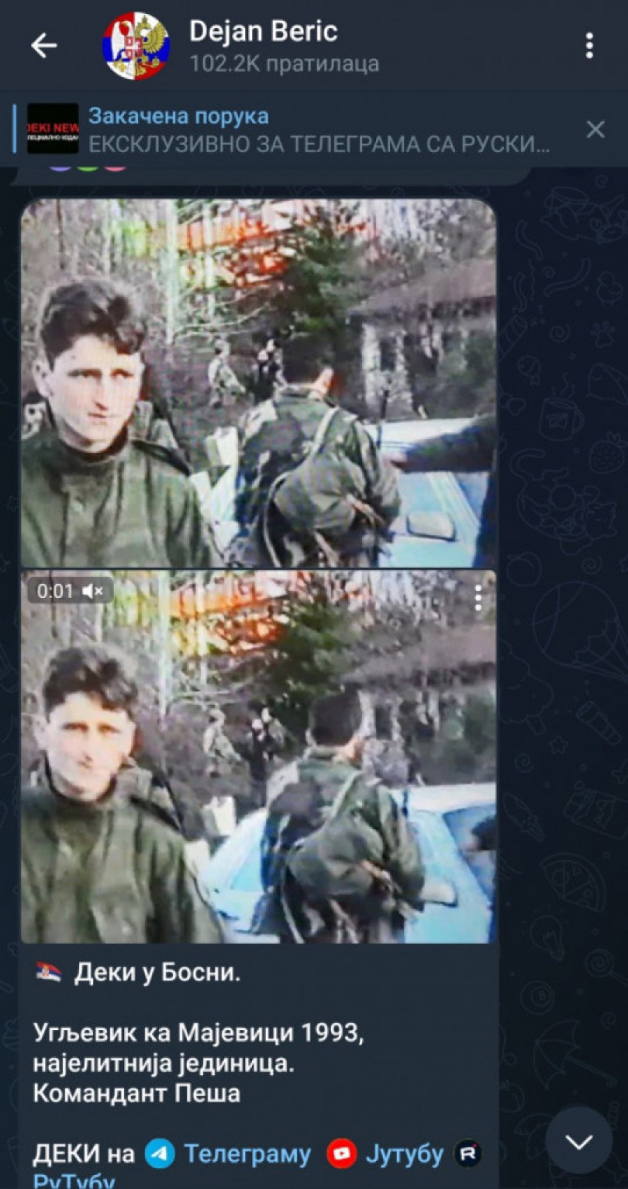 Želeći da se opravda, samozvani heroj je smislio novu laž - tvrdeći da je i on sam bio borac VRS. Kao dokaz za to na svom Telegram kanalu je objavio snimak na kojem se vidi mladić koji samo delimično podseća na njega uz tekst: "Deki u Bosni. Ugljevik ka Majevici 1993, najelitnija jedinica, komandant Peša".