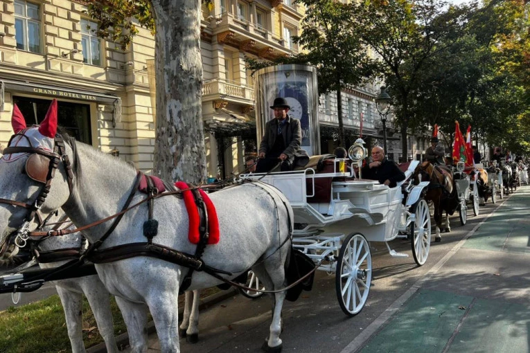 Bečki konjušari su sa 25 fijakera vozili srpske poljoprivrednike kroz austrijsku prestonicu, a u fijakerima zastave Srbije, Austrije i grada Jagodine.