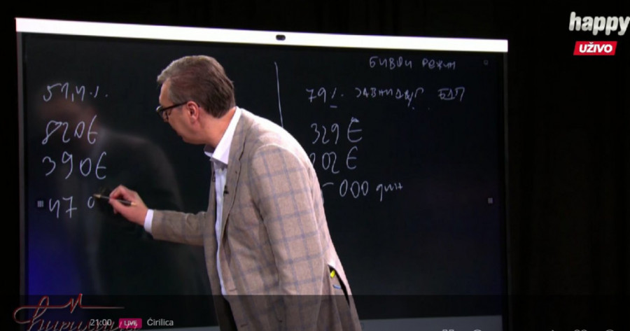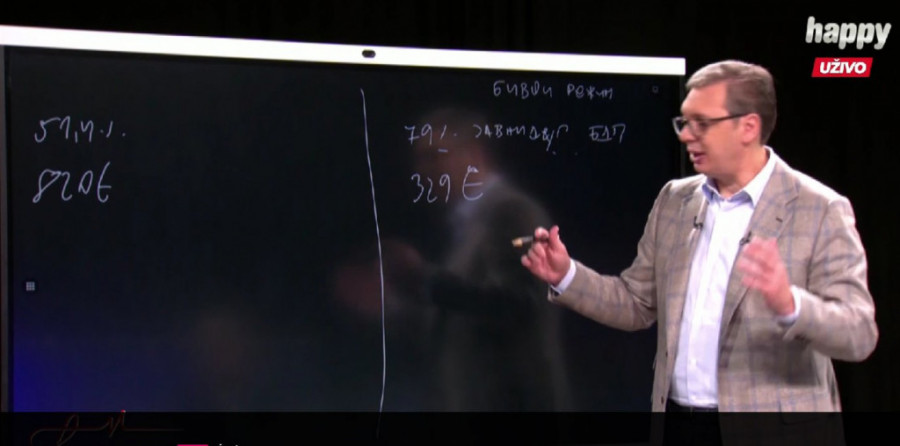 Poredeći učinak aktuelne i bivše vlasti, predsednik Vučić je tabli napisao egzaktne podatke.