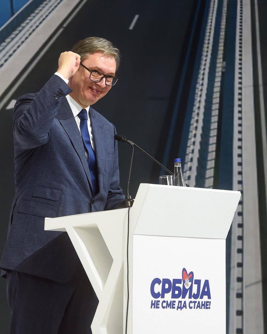 - Čast mi je što svom snagom, ljubavlju, energijom, podržavam listu "Srbija ne sme da stane", jer verujem da je to budućnost naše zemlje. Verujem da to znači sugurnost i bezbednost za naše ljude. To znači još fabrika, obnovljenih i novoizgrađenih škola, bolnica, kliničkih centara, domova zdravlja, veće plate i penzije - poručio je predsednik.