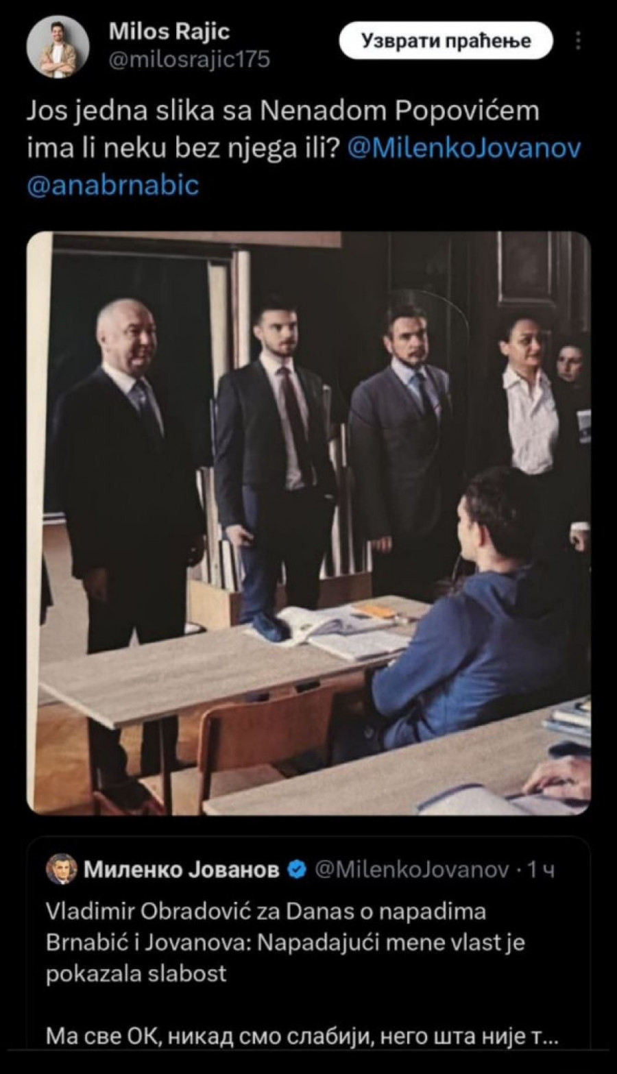 Ipak, kako vreme prolazi ispostavlja se da nije u pitanju samo "jedan projekat" kako je naveo Obradović na kom je radio sa Nenadom Popovićem, sada se pojavljuje još fotografija na kojima su njih dvojica zajedno. Zapravo, možda možemo i da kažemo da Vladimir Obradović zapravo i nema sliku na kojoj se ne nalazi sa Popovićem i to vidno nasmejan i raspoložen.