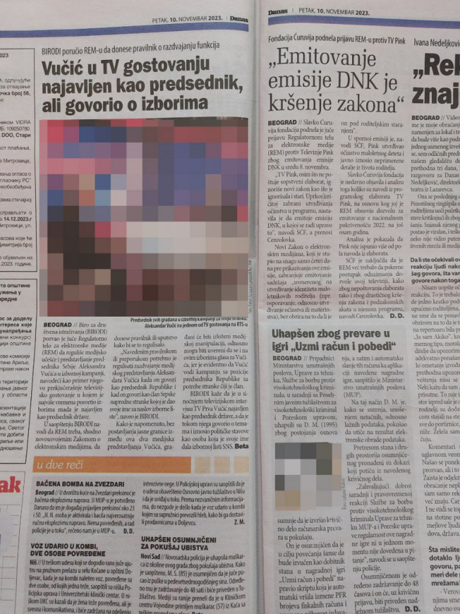 Krenimo redom. Na naslovnoj strani Danasa od šest najava svih šest su usmerene na pljuvanje vlasti.
