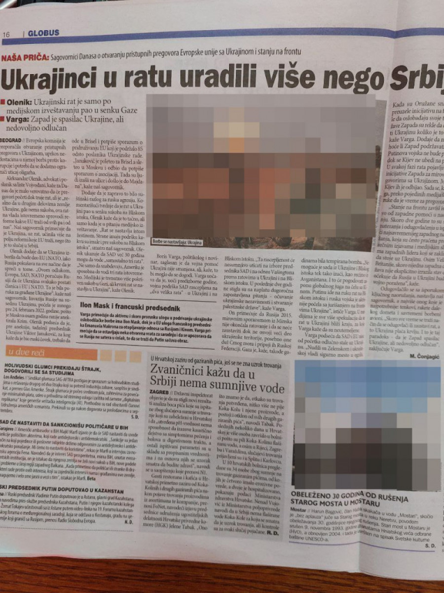 Od toga da se u Srbiji živi kraće nego u EU (kao jedan od razloga navodi se da zdravstvene ustanove nisu dovoljno pristupačne zbog udaljenosti), kritikuje se Beograd na vodi, predsednik Aleksandar Vučić se stavlja u isti koš sa Aljbinom Kurtijem, premijerom privremenih prištinskih institucija, iako je odavno svima jasno ko pravi probleme i odbija bilo kakav razgovor. Tu je i najava za tekst kako hrana koja je štetna u Evropi, srpskim vlastima je dobra, a čak si i priču iz oblasti kulture uspeli politički da oboje...